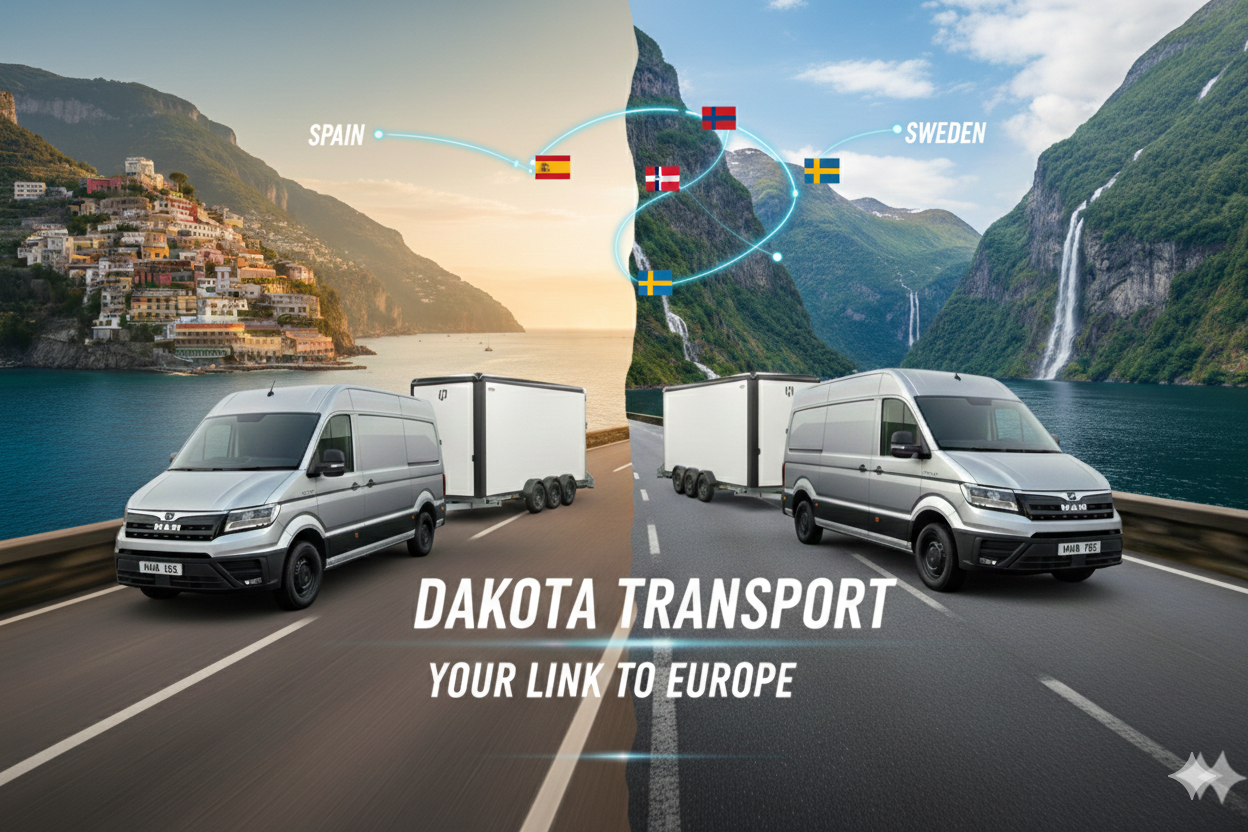 Dakota Transport is gespecialiseerd in internationale deur‑tot‑deur transporten tussen Nederland, België, Spanje en Scandinavië.